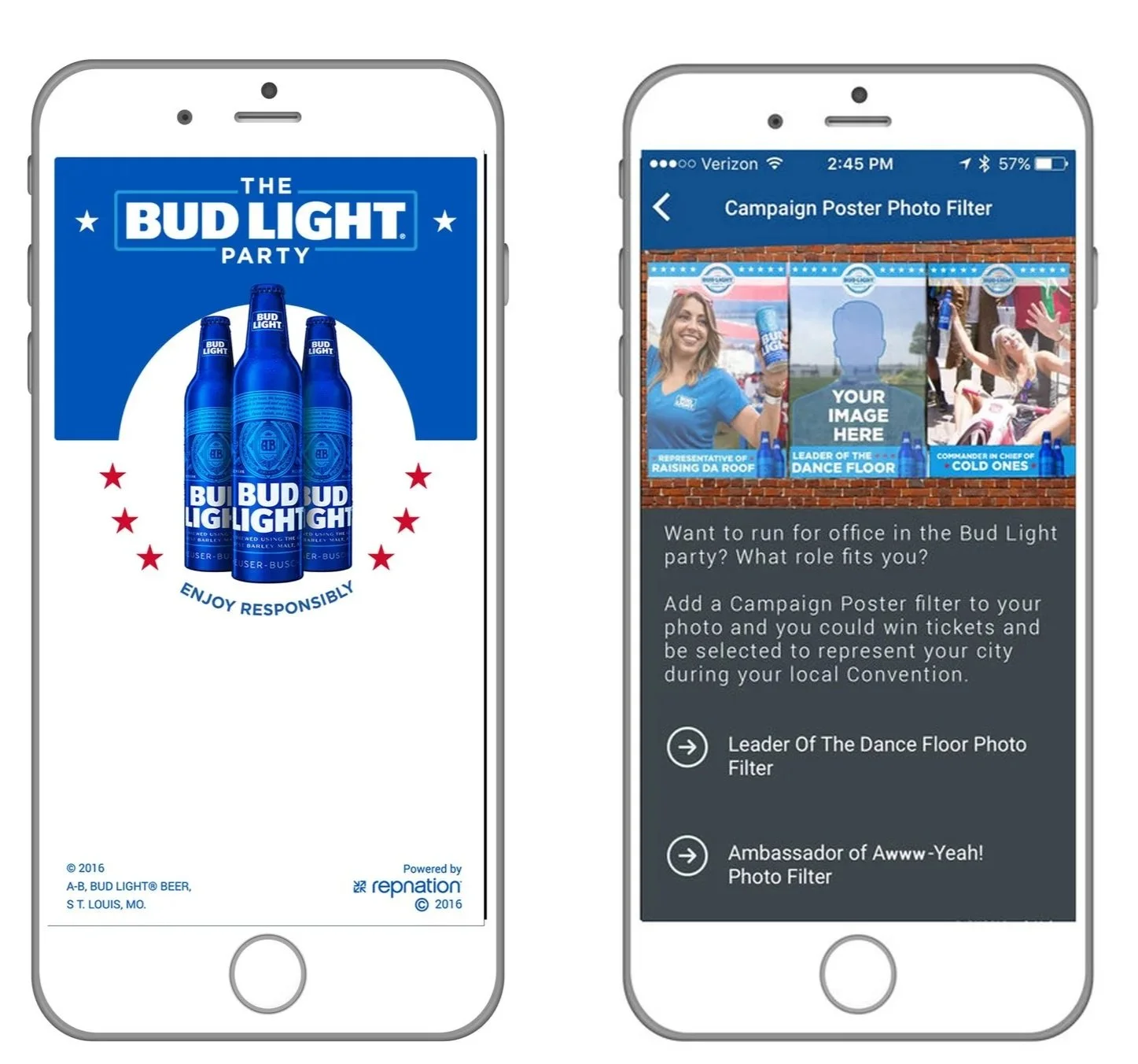 Build an app to support the Bud Light Party campaign. For 2014, Bud Light positioned itself as the political party that brings everyone together.